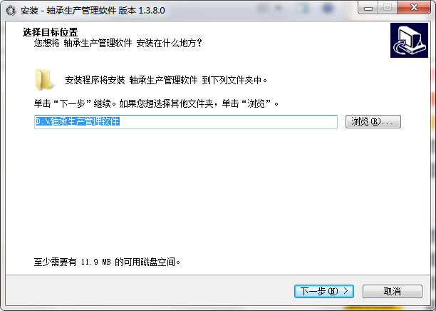 3.双击打开,进入慧宏轴承生产管理系统软件界面,选择安装位置,点击下一步