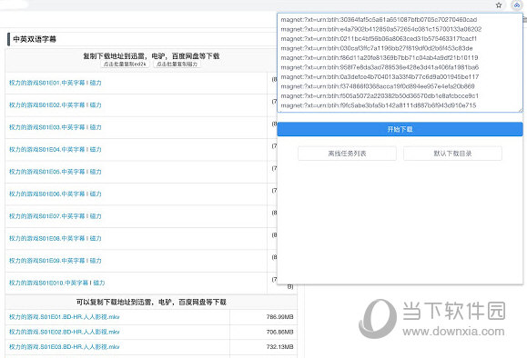3、当需要下载页面中的多个链接时,可以用鼠标像复制文字一样选中一组链接,然后点击插件图标,在弹出的页面中即可看到自动提取的链接,勾选之后添加到离线下载