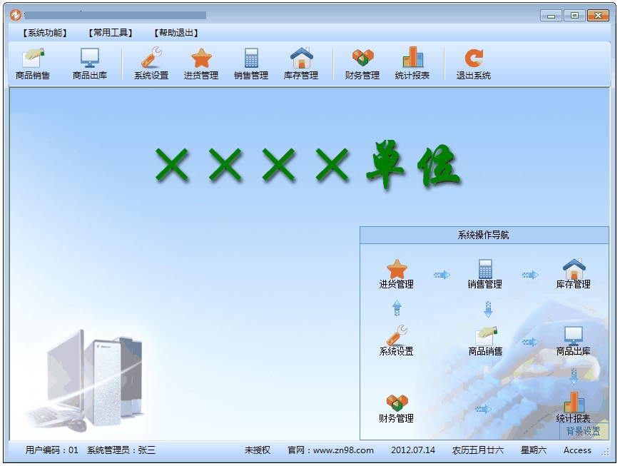 系统设置:商品信息、供货商、客户、员工、仓库等基本参数的设置;以及进行操作人员及权限设置,数据备份,数据恢复,数据压缩,数据清理等设置。