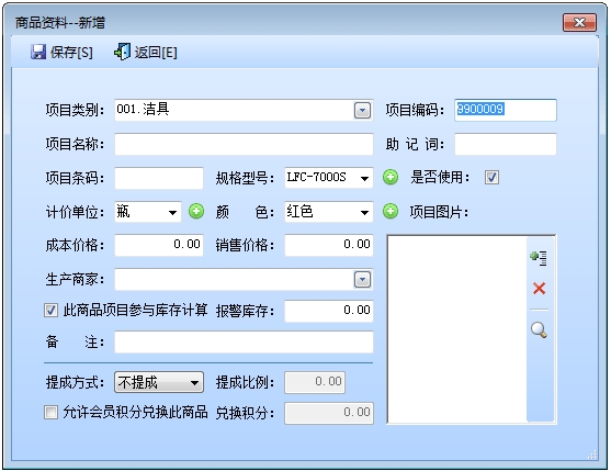 在商品列表中点击“增加”按钮打开增加商品界面:
