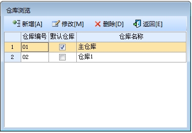 在“系统设置”模块中点击"仓库设置"按钮打开仓库信息窗口。在窗口中可以看到所有的仓库。点击“增加”按钮打开增加仓库窗口,输入仓库的信息,仓库名称不能重复。点击“修改”按钮可以修改选中的仓库信息。点击“删除”按钮可以删除选中的仓库。鼠标单击表列标题,可按升(降)排序。