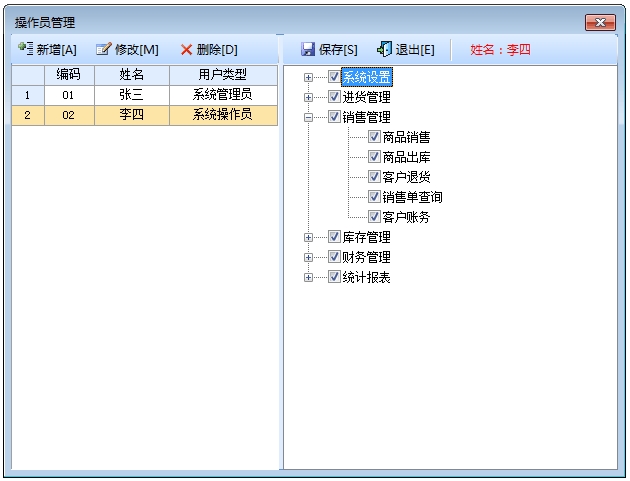 操作员及权限设置