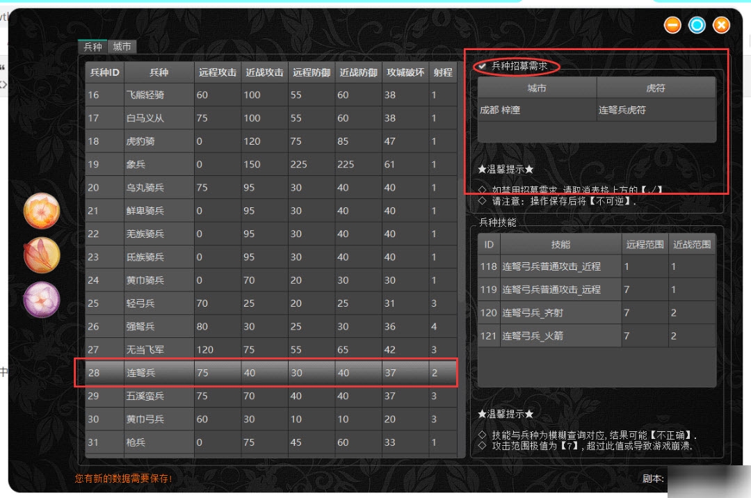 第一步:在可选特性列表中,搜索连弩,找到连弩特性,右键单击添加到城市特性列表中.