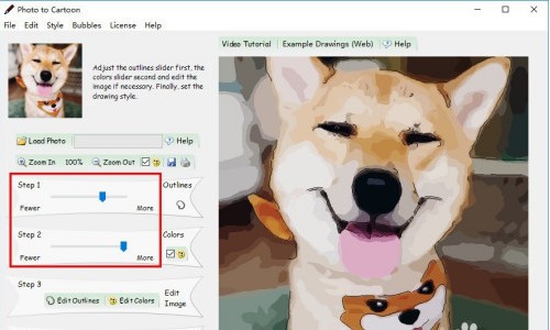 5.通过鼠标移动滑杆来调整Step1的"Outlines"和Step2的"Colors"参数。