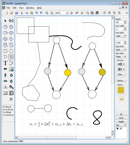 7、在WinFIG中,使用Xfig使用公制单位(cm)创建的图形要小一些。