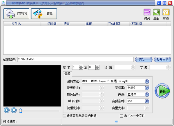 DVD转MP3转换器软件所展示的资源内容均来自于第三方用户上传分享,您所下载的资源内容仅供个人学习交流使用,严禁用于商业用途,软件的著作权归原作者所有,如果有侵犯您的权利,请来信告知,我们将及时撤销。