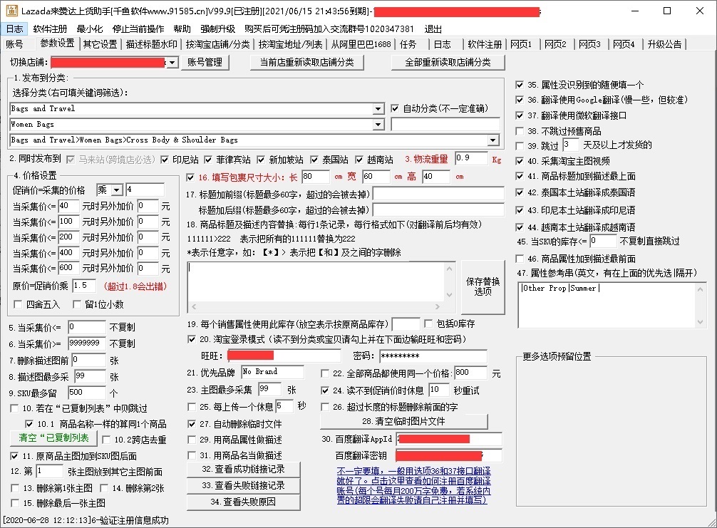本软件为千鱼软件自主开发,只需设置好店铺帐号、价格公式、分类、物流重量、包裹尺寸等选项,即可一键批量提取淘宝、天猫、阿里巴巴商品(目前支持从淘宝、天猫、阿里巴巴搬),一键自动采集商品信息、自动翻译、自动上传图片(可自动打水印)、自动识别填写属性、自动转换SKU库存和SKU图并可同时上传到马来西亚、印尼、新加坡、菲律宾、泰国、越南6个站点,支持多店铺使用任务列表批量上传。使用非常方便快捷,帮您节约大量时间用于店铺运营。