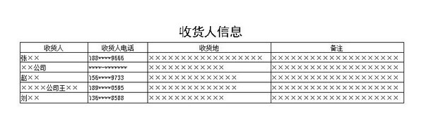 报表名称:收货人信息表;纸张类型:A4;纸张放置:竖放;报表类型:多记录报表;