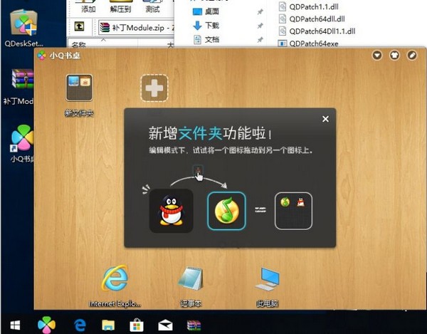 3、找到桌面上的小Q书桌图标,右键打开文件所在位置。(一般安装在C:⁄Program Files (x86)⁄Tencent⁄QDesk),并找到目录ProgramData⁄Module。完整的路径例如:C:⁄Program Files (x86)⁄Tencent⁄QDesk⁄ProgramData⁄Module4、删除QDesk⁄ProgramData⁄Module目录下的所有文件,共4个文件:QDPatch1.1.dll、QDPatch64dll.dll、QDPatch64Dll1.1.dll、QDPatch64exe.exe将 补丁Module.zip 内的文件解压到QDesk⁄ProgramData⁄Module目录下,若提示文件正在被使用,请在任务管理器里关闭小Q书桌并重新启动Windows资源管理器即可。