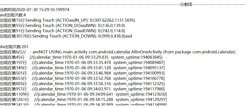 增加功能:统计出现关键字的所在行数;增加分割线