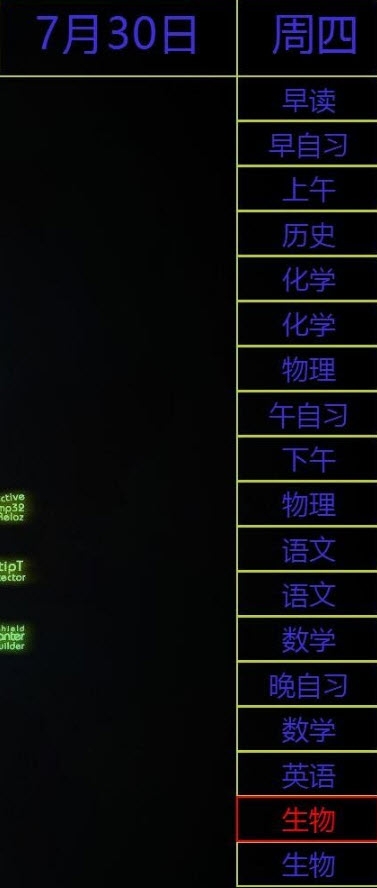 桌面课程表成品+源码软件所展示的资源内容均来自于第三方用户上传分享,您所下载的资源内容仅供个人学习交流使用,严禁用于商业用途,软件的著作权归原作者所有,如果有侵犯您的权利,请来信告知,我们将及时撤销。