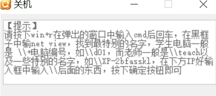 杀极域进程(需要提前下载好ntsd.exe并放入软件目录或Windows文件夹)远程关机(输入对方IP或计算机名)万能密码