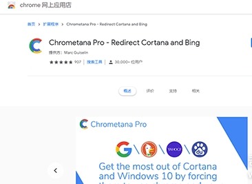 3.打开谷歌扩展商店,搜索Chrometana Pro安装(该插件可以将Bing改成Google、Baidu、DuckDuckGo、yahoo、Custom中任意引擎)