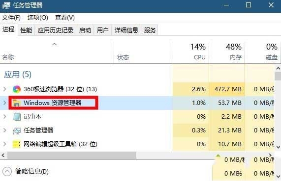 7、重新启动任务管理器中windows资源管理器或者直接重启电脑即可。