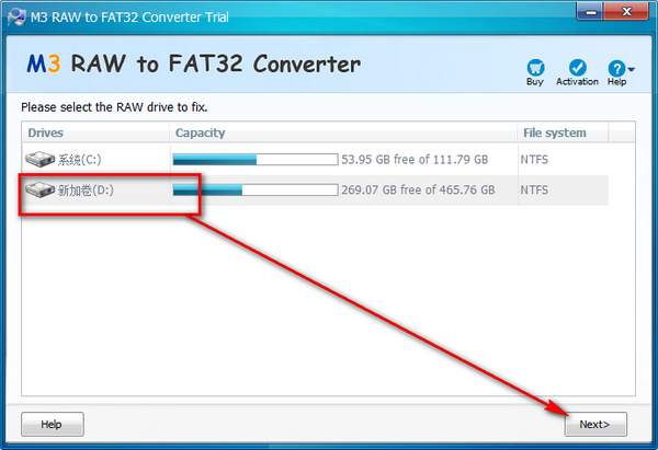 下载帮助:点击M3 RAW To FAT32 Converter(硬盘驱动器修复工具)软件立即下载,解压后安装,一直点下一步,直到安装完成,再打开使用。