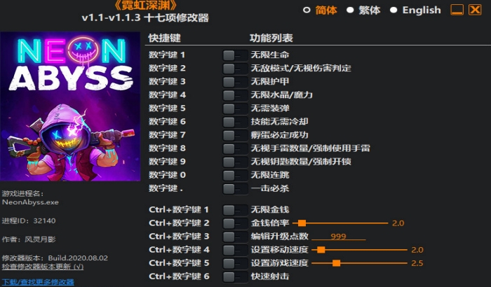 霓虹深渊十七项修改器 v1.1-1.1.11下载