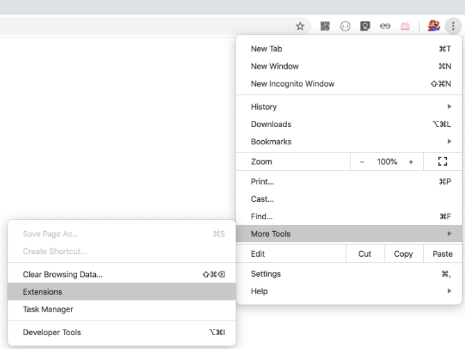 打开浏览器的扩展设置页面