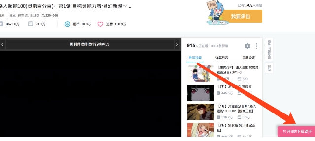 打开B站视频的播放页面,正常的话在页面底部会弹出助手的主界面