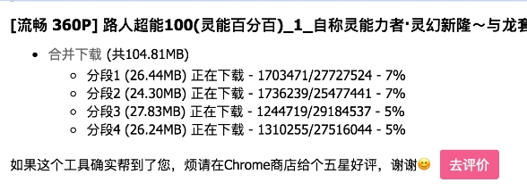等待所有分段下载完成后会自动合并分段和重命名,并弹出保存窗口或直接保存到浏览器设置的默认下载位置
