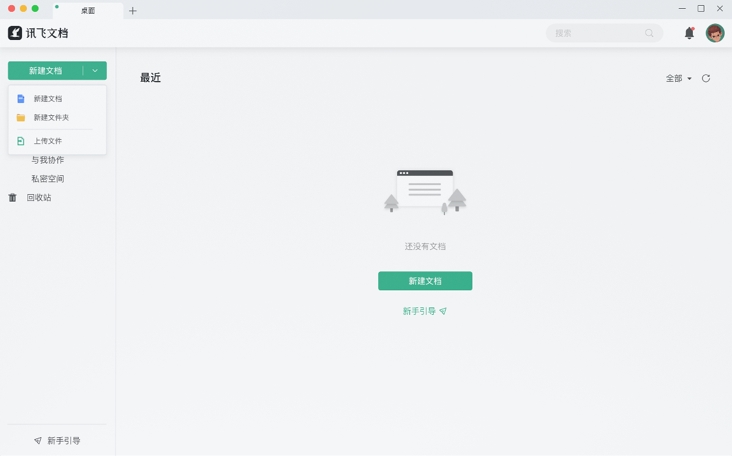 通过「新建文档」来创建您的第一篇文档,就可以开始记录啦!讯飞文档同时也支持多级文件夹创建,帮助你规范管理个人和团队的文件。