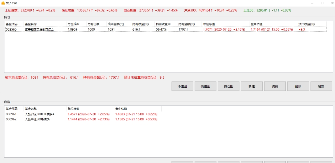 发了个财是非常多的人都在使用人用的一款专业非常实用的基金估值获取和计算软件,提供基金信息,计算基金预计收益等功能,支持添加、编辑、删除,查看估值图,净值图等操作,支持Excel模板导入、自定义排序、定时自动刷新。接下来非凡软件站小编就给大家带来这款软件的具体介绍,感兴趣的小伙伴们速来看看吧~~