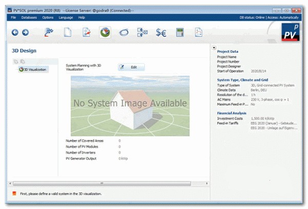 PVSOL Premium 2020是非常多的人都在使用人用的一款非常专业的光伏系统规划和仿真软件,提供详细的3D 阴影分析功能,可以可视化所有屋顶集成和高架的系统,还可以使用平面图,平面图和地图屏幕快照快速轻松地创建建筑物和对象,接下来非凡软件站小编就给大家带来这款软件的具体介绍,感兴趣的小伙伴们速来看看吧~~