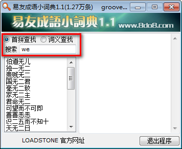 易友成语小词典是非常多的人都在使用人用的一款简单易用的成语学习小工具,软件主执行exe程序只有70k,共收录1.27万条成语条目,包括词义,拼音,出自以及举例项目 ,支持词语首拼输入,还可以词义搜索,找寻指定词义的成语条目,有需要的小伙伴千万不要错过了,赶快来非凡软件站下载吧~