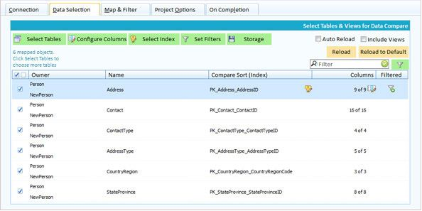 模板项目仍然可以具有“完成时”事件,甚至包括负载过滤器和映射。对于数据比较项目,我们建议使用自动模式,以允许SQL Delta在项目每次运行时自动加载和映射源表和目标表,这意味着即使对连接信息进行动态更改也不会限制数据比较。