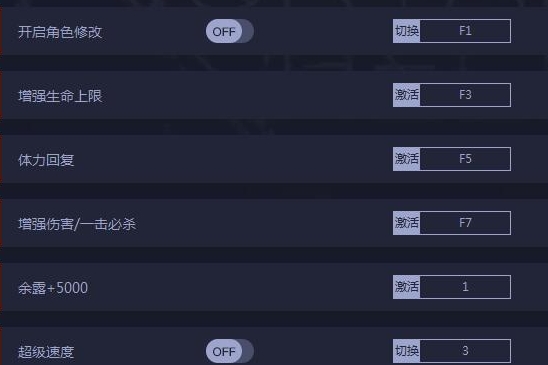 3.开启修改器各主初始项再使用各子修改项[无主初始项则不用开启][主初始项:如开启...修改]。