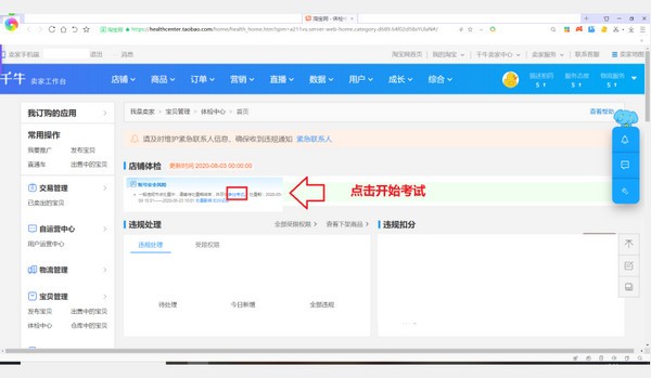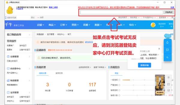 6、如果点击开始考试无反应,请到浏览器登录卖家中心打开考试页面