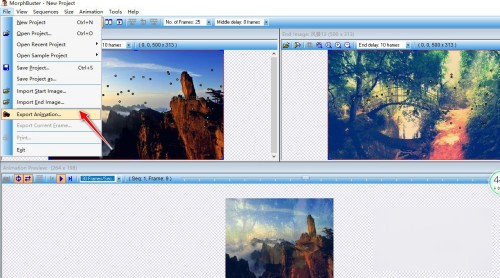 7、最后,选择"File"->"Export Animation..."菜单,可将处理后的图片以如GIF 或Flash等动画格式文件导出到电脑上。