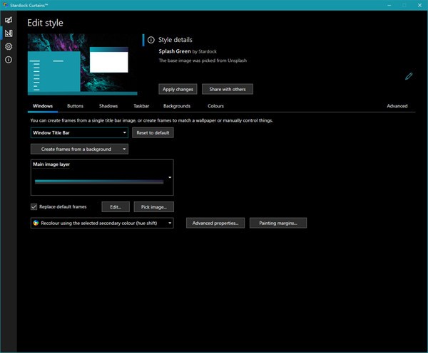 使用内置的样式编辑器,你可以轻松创建和分享自己的样式。一个Curtains风格可以改变一切光和暗模式可以改变的东西,包括开始按钮,标题栏按钮和标题栏着色。它还支持调整渐变、阴影不透明度以及Windows GUI中的其他数百种小元素。