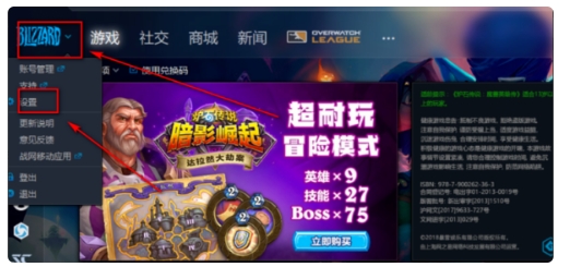 2、点击左上角的游戏标志,如图所示,在下拉菜单点击设置。
