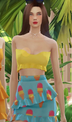 模拟人生4超可爱的花边短裙MOD使用后就会在游戏中新添一条非常可爱的印花短裙,印花是非常清凉的冰激凌雪糕图案,裙子的颜色也是给人一种冰冰凉凉的蓝绿色调,具体效果可以参考下图,荷叶边的设计增加了裙子的少女感,非常好看,喜欢的玩家千万不要错过了,赶紧来下载使用吧~