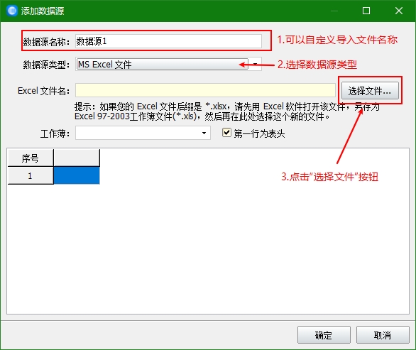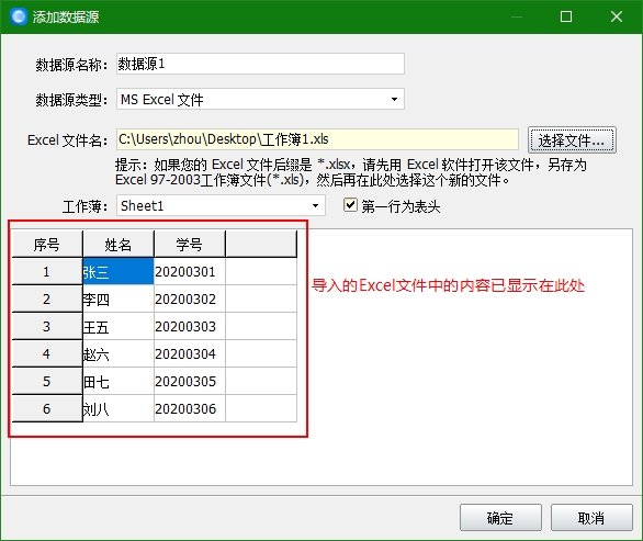 此处可以设置导入后的数据源名称,非常方便以后查看,数据源类型默认为Excel文件,点击“选择文件”按钮即可选择待导入使用的Excel文件,导入后如下图所示: