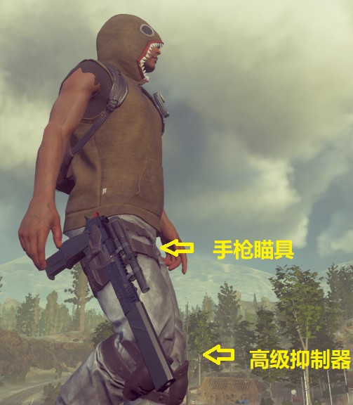 RTX堡垒:黑色连发沙漠之鹰,.44马格南弹,瞄具换成了.44秃鹰之王的瞄具,增加了高级抑制器,无限耐久,噪音少许降低。弹夹容量增加到45发,这把手枪无枪口配件,如果你要拆下高级抑制器,将无法安装其他任何一种枪口配件了,(野外30分红爪商人有售)。