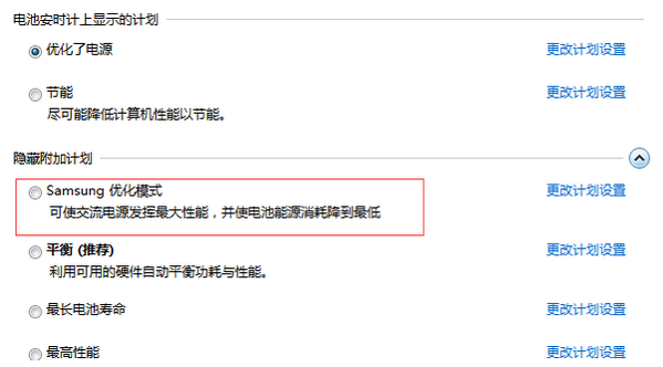 安装过程完成后,您会注意到Easy Battery Manager会自动在“硬件和声音”面板的“电源选项”管理单元中创建一个新条目,即“三星优化”。选择后,程序会将所有电源管理项目设置为最佳值,但您也可以按自己的方式自定义它们。