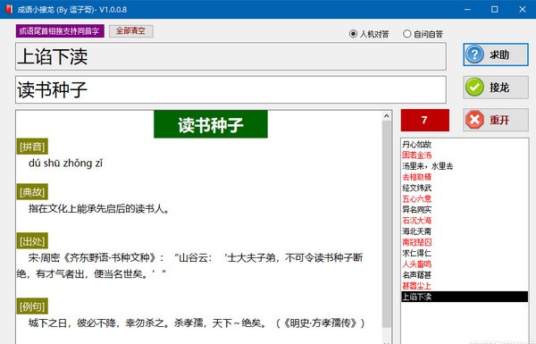 下载帮助:点击成语小接龙软件立即下载,解压后安装,一直点下一步,直到安装完成,再打开使用。