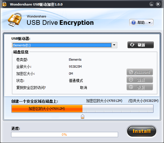 下载帮助:点击Wondershare USB驱动加密软件立即下载,解压后安装,一直点下一步,直到安装完成,再打开使用。