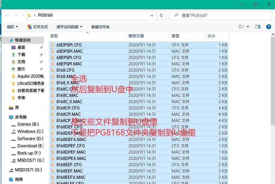 6.写入完成之后进入PG8168文件夹把里面所有东西都复制到U盘然后就可以重启了,出现替换提示选择全部替换