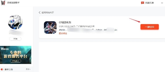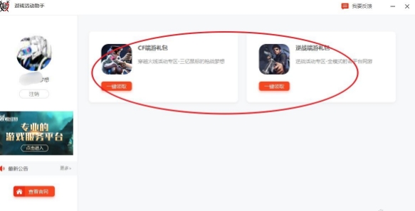 支持一键领取CF,逆战两个游戏的端游活动礼包。