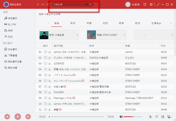 一、下载打开软件,输入要搜索的音乐,点击搜索即可出现。