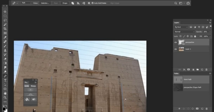 PS透视线工具插件最新版Perspective Tools,帮助用户在PS软件中快速画出透视线,从而非常方便用户给物体添加贴图,只需通过简单的点击创建透视和平行网格,即可在透视图中变换角度,改变透视变形!