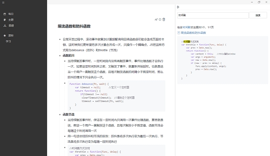 Roam Outliner笔记界面显示三栏,左侧是导航栏,中间显示主文章,右侧可以打开搜索页或者引用页面,软件使用数据库的方式存储数据,支持块级别的引用,提供强大非常实用的搜索功能,使用软件用户可以进行文本方面的创作,同时也能够记录你的代码内容。