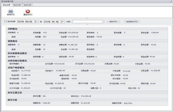 商品采购统计、业务员采购统计、总体营业情况分析、业务员销售统计、会员消费情况统计、商品销售情况统计、供货商管理、员工管理、财务管理