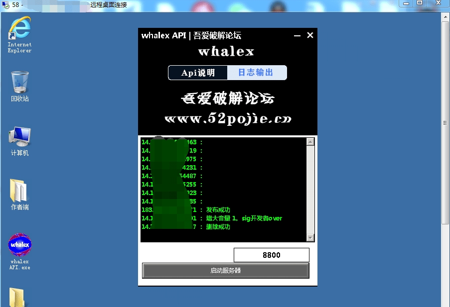 whalex API能够帮助用户轻松管理api平台留言,可以用于超市喇叭点歌程序,与e4a安卓开发互通,手机发布留言(命令)进行点歌,电脑查询手机发布的点歌留言(命令),进行相应的操作处理,使用方法打开界面就有,目前只支持单条留言发布,虽说是留言板功能,一般用于单个信息传输。
