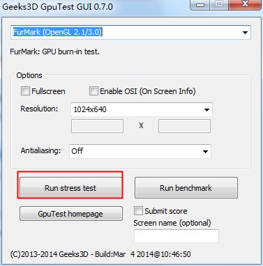 基于FurMark的压力测试(OpenGL 2.1或3.2):