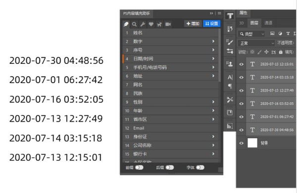 PS内容填充助手是灰色执照开发的又非常多的人都在使用人用的一款基于PS的插件,它可以快速的填充各种类型的文字数据
