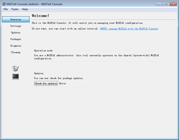 集成包管理 -- 如果需要,MiKTeX的集成包管理器会从Internet安装缺少的组件。例如,LaTeX指令