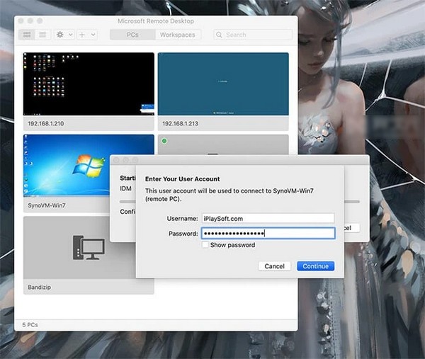 启动名为 IDM 的远程机器,输入远程主机对应的用户名密码进行连接。